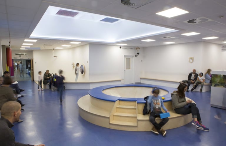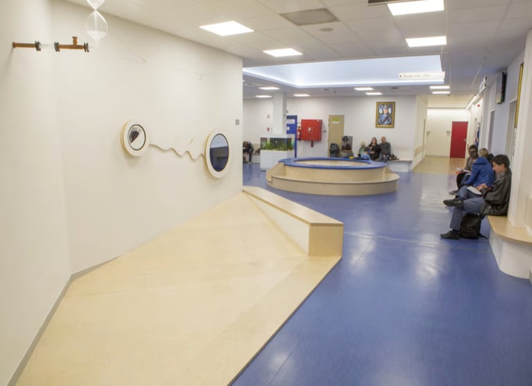 Salle d'attentes hôpital UZ. Collab Recyclart Fabrik - Madam architecte